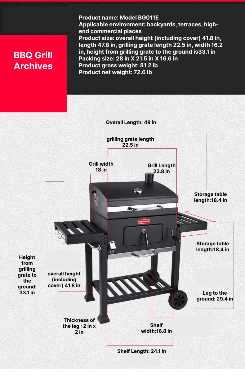 - Height-Adjustable Charcoal: Precision heat control for perfect grilling.