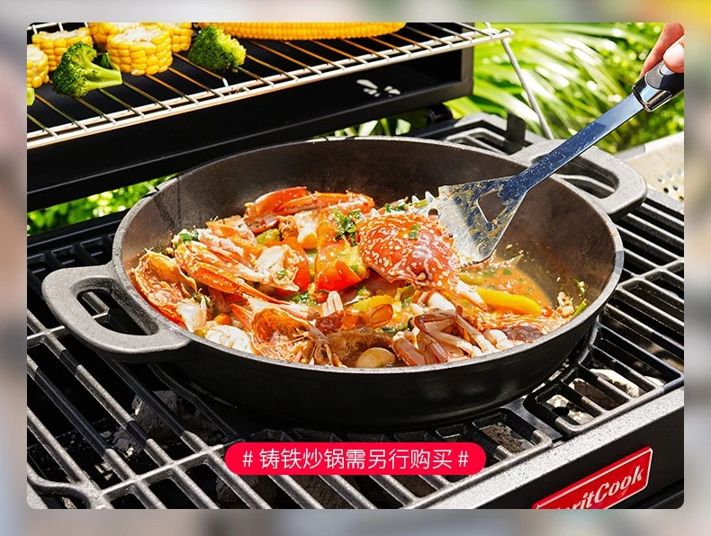 Indulge in the rich flavors of stir-fried crab and scallops with ginger, expertly prepared on our multi-purpose grill. Beyond traditional grilling, this versatile appliance doubles as a cooking platform, offering endless culinary possibilities. However, for the optimal stir-frying experience, consider purchasing our separately available Cast Iron saucepan. This addition enhances the grill’s capabilities, allowing for seamless stir-frying and other cooking methods. With cast iron’s superior heat retention and even distribution, you can achieve perfectly cooked dishes with enhanced flavor profiles. From grilled meats to stir-fried seafood, this grill offers convenience and versatility in outdoor cooking. Its durable construction ensures longevity, while easy cleanup simplifies maintenance. Elevate your outdoor culinary adventures with our multi-purpose grill, transforming any gathering into a memorable dining experience filled with delectable flavors and enticing aromas.