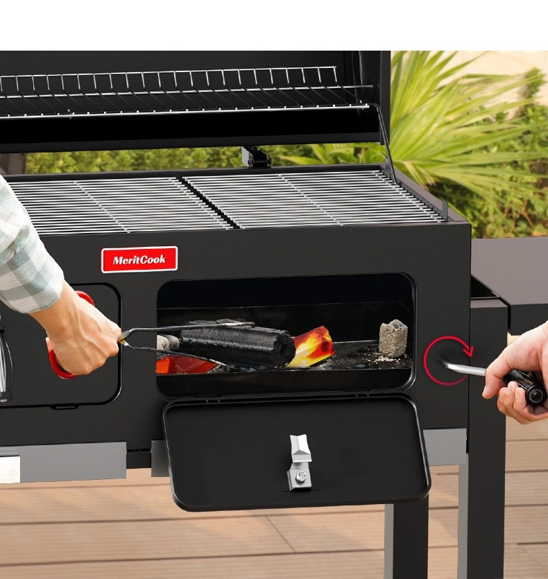 - Handle-Operated Charcoal Basin: Fire control is simplified with a handle-operated height-adjustable charcoal basin. Turning the handle raises or lowers the charcoal basin, directly impacting temperature control.