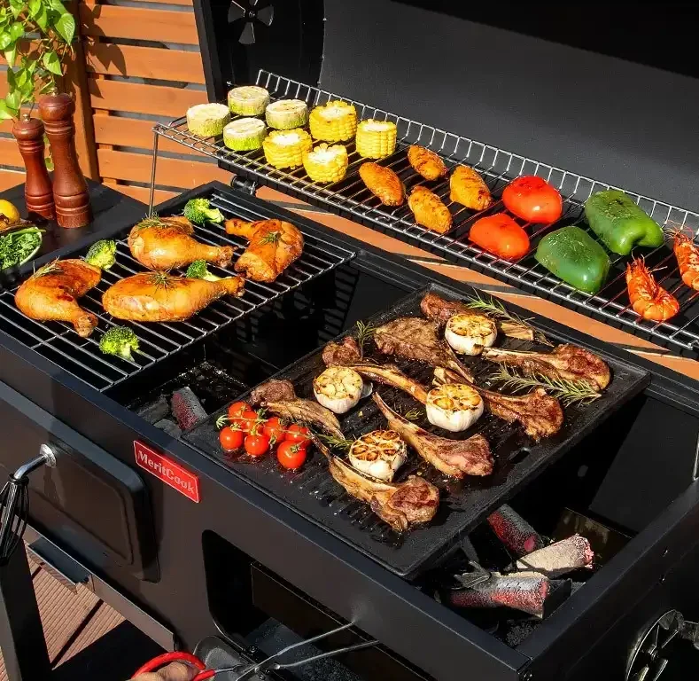 - Front Charcoal Control: Enables convenient adjustment of fire and heat levels.