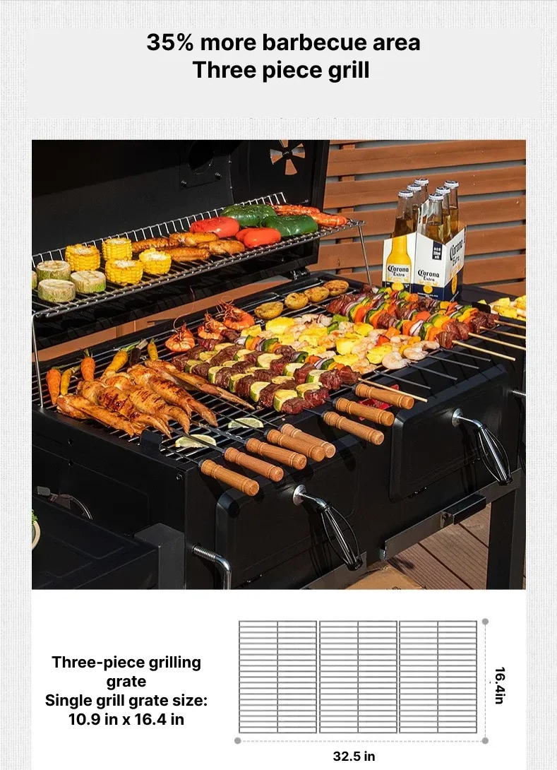 - Front Double Door Design: This innovative feature allows for independent charcoal addition during barbecuing, preventing interference with cooking.