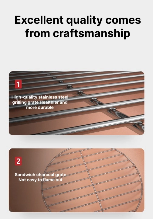 Material: high quality steel + stainless steel grilling grate